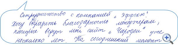 11.06.2015 «...За период своего сотрудничества, благодаря своему сайту (…) я развила свой бизнес, приобрела постоянную клиентуру во всех странах». |